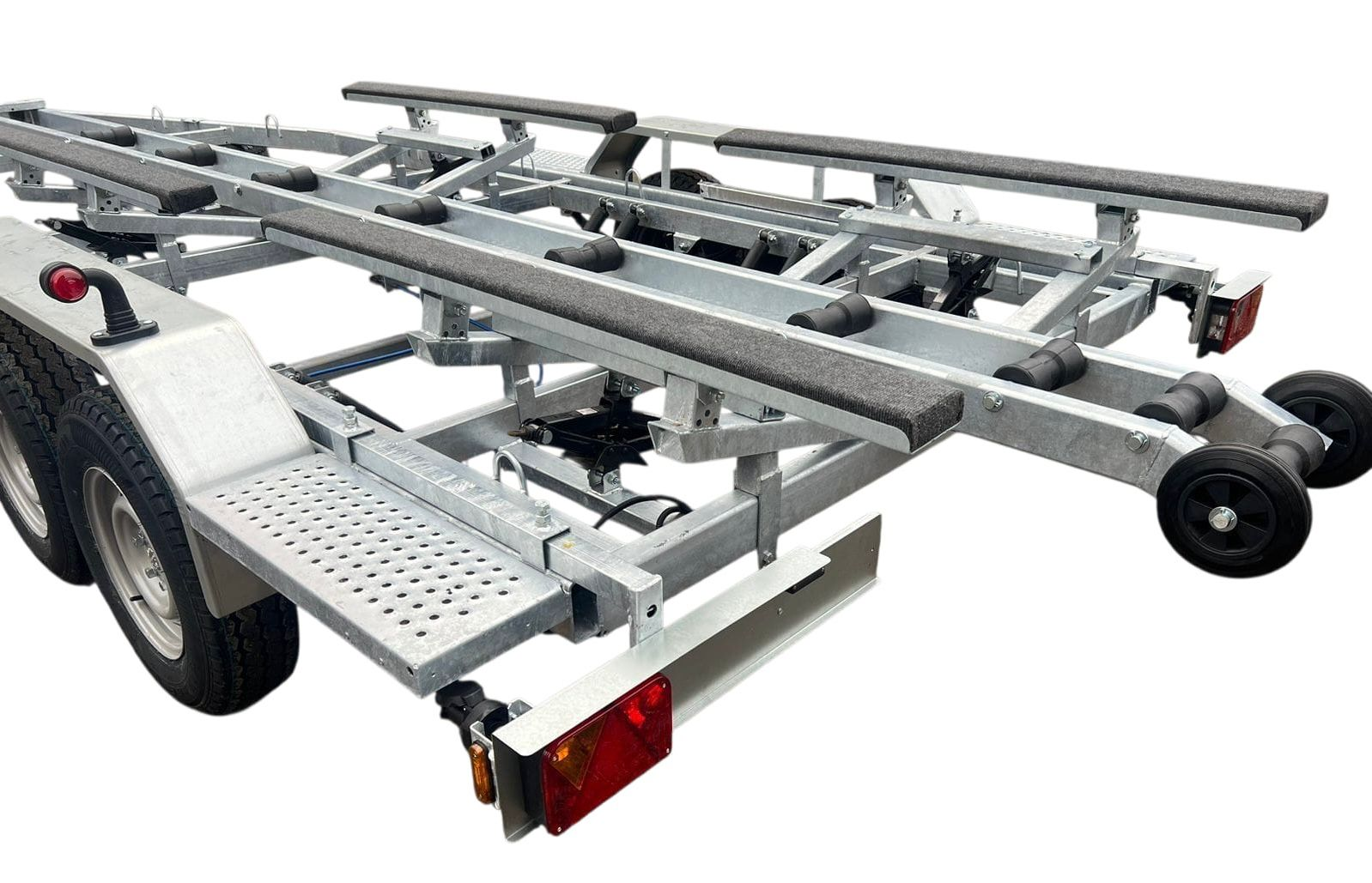 Теперь прицепы для перевозки водной техники, оснащённые тормозом, моделей ЛАВ-81016, 81016А. 81017, 81018, 81018А, 81023 оснащаются ложементами, с возможностью регулировки угла наклона (высоты) ложементов с помощью домкратов.
