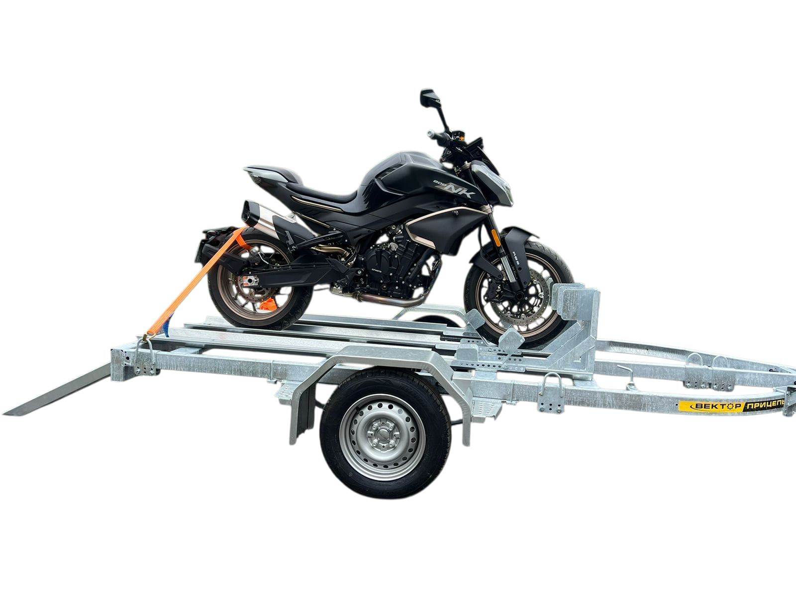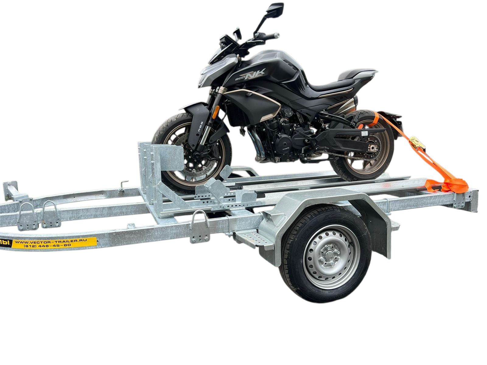 Одноосный прицеп без тормоза ЛАВ-81012 Мото предназначен для перевозки двух мотоциклов одновременно, оснащён направляющими для установки мотоциклов и фиксатором переднего колеса (с шириной фиксирующей "лапы" 90 или 120 мм на выбор) для каждого мотоцикла. Для обеспечения оптимальной нагрузки на сцепной шар, подвеска может быть смещена вперед или назад в зависимости от положения центра тяжести перевозимого груза. Перемещаемые по раме петли крепления груза позволяют надёжно закрепить грузовыми ремнями груз при перевозке. Трап для заезда входит в стандартную комплектацию, при перевозке размещается в передней части рамы прицепа.