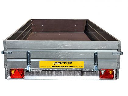 Рама, дышло и ось прицепа полностью оцинкованы методом горячего цинкования изнутри и снаружи. Борта и крылья из оцинкованной стали. Прицеп одноосный, без тормозов, снабжен откидным кузовом, передний и задний борта откидные, с возможностью быстрого съёма. Дышло V-образное. Днище - ламинированная фанера. Подвеска колес (R14) или (R16) на двух полуэллиптических переменного сечения рессорах с гидравлическими амортизаторами. Размеры кузова 3500*1500 мм. Высота бортов 240 или 380 мм. Грузоподъёмность 450 кг.